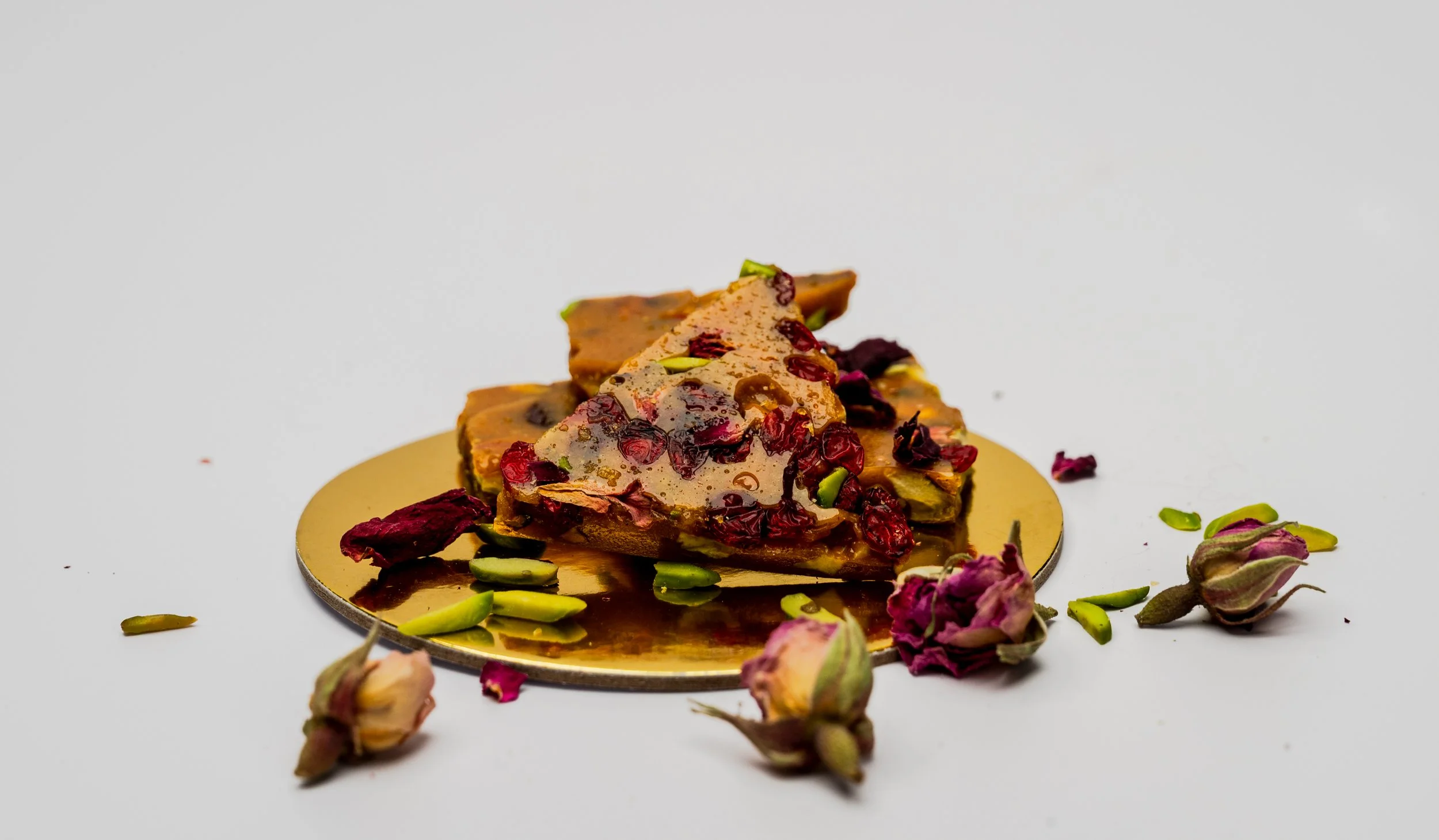 Leyla created her collection of Persian-Style Brittle to introduce a twist on a beloved treat. Made with roasted pistachios, a touch of saffron, and just the right amount of crunch, each bite is fragrant and satisfying, with hints of floral warmth and nostalgia. Light, crisp, and delicately sweet.
